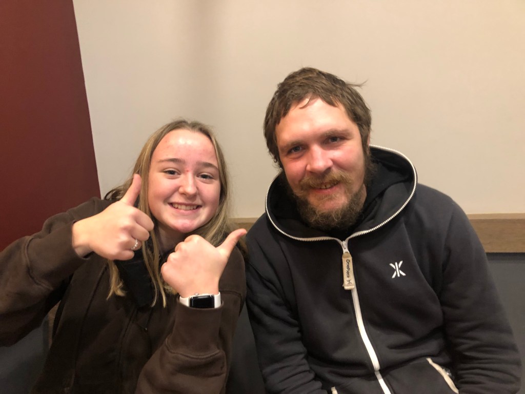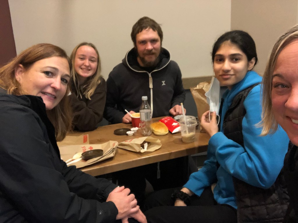 Daniel enjoyed a wrap, chili, bun and a diet coke and we genuinely enjoyed his company. Together we talked about sports, cooking and family. He laughed at my cooking stories and boasted about his own abilities after watching every episode of Rachel Ray. As a former basketball player he loves the LA Lakers. Mahdiya and Daniel compared basketball stories as student athletes. Daniel explained his phone had been stolen and the only clothes he has are the ones he was wearing. We complimented him on his XL onesie that kept him warm on the streets. He was proud of himself for finding this gem of an item at the local Value Village. He explained his current shelter does not open until 9:30 PM so the day would be long in Vancouver’s rain. He prefers the 24 hour shelter but is currently banned after engaging in a physical altercation where he admittedly reacted after being called a goof. With some shame he shared that his anger can get the best of him, reflecting on experiences being kicked out of his SRO housing and shelter and spending some time behind bars. We understood and spoke of the impact trauma can have on all of us.
