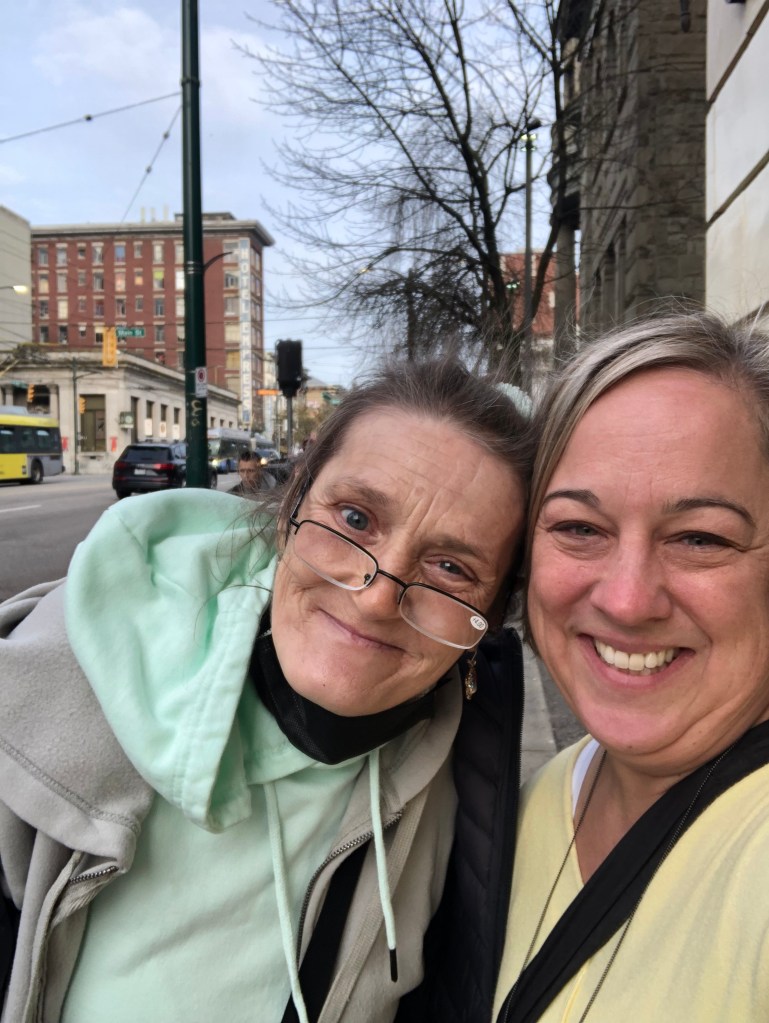 I knew I had taken on an impossible task but could not erase the image of Cindy sobbing against a parking meter as we drove away. I needed to find her daughter. After a few days of searching Facebook, I miraculously found Paige through a mutual friend. Eager to meet her mother, Paige agreed to fly to Vancouver. Cindy, determined to be a good mom, checked herself into rehab for six months, and was clean for their face to face reunion in the spring of 2014. (reunion shown here)